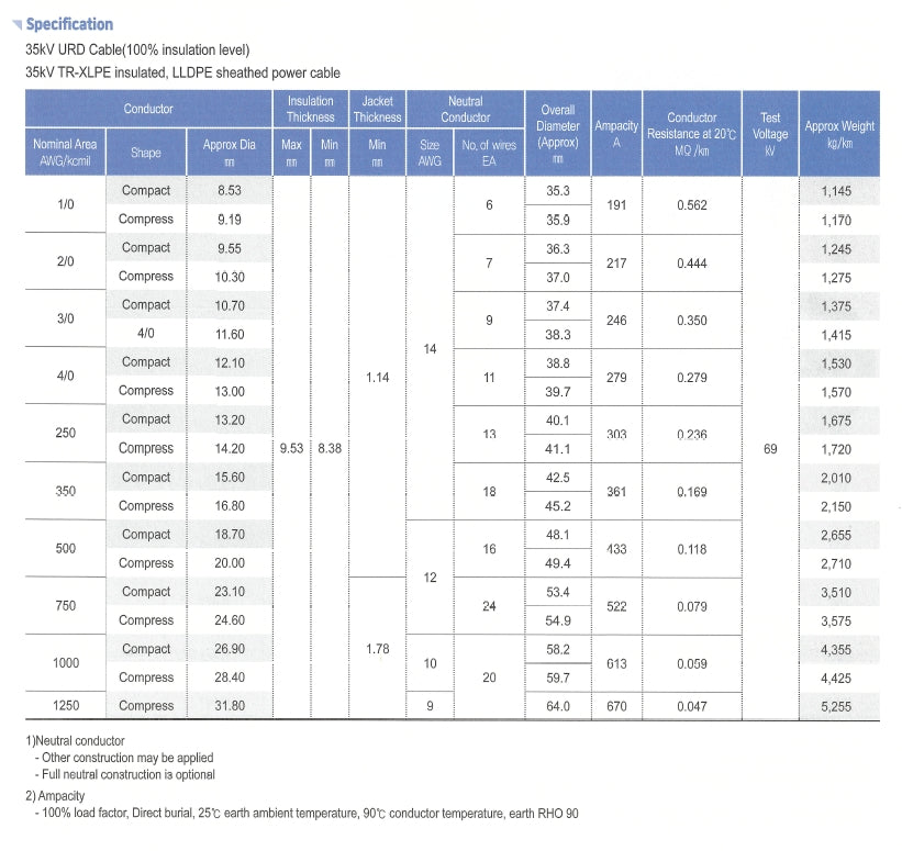 *"The available sizes currently are 500, 750, 1000, and 1250 kcmil. For other sizes, please feel free to contact us."
