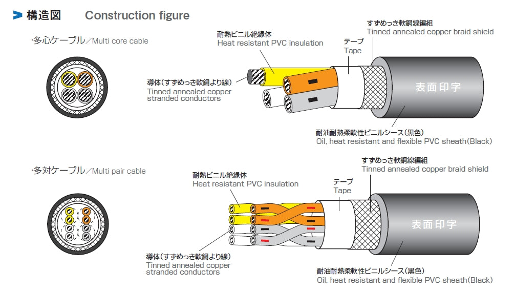 - Shielded Electric equipment cable with UL and cUL at 300V,80℃.