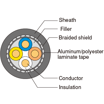 Shield:Aluminum/polyester laminate tape + Tin coated annealed copper braid